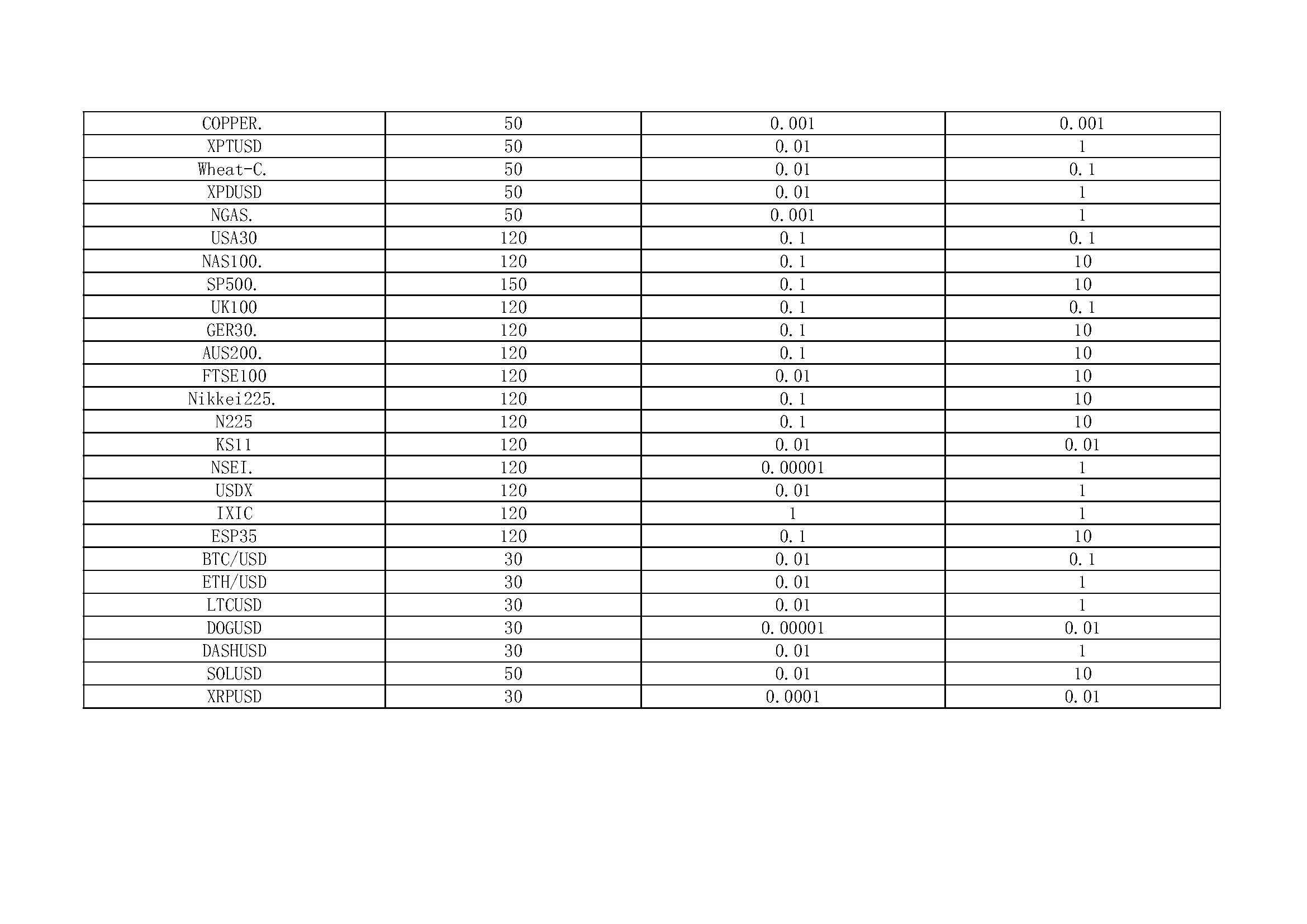 The following table lists the spreads, margins and trading hours of some of the most popular foreign exchange currency pairs on our "new generation" CFD trading platform.