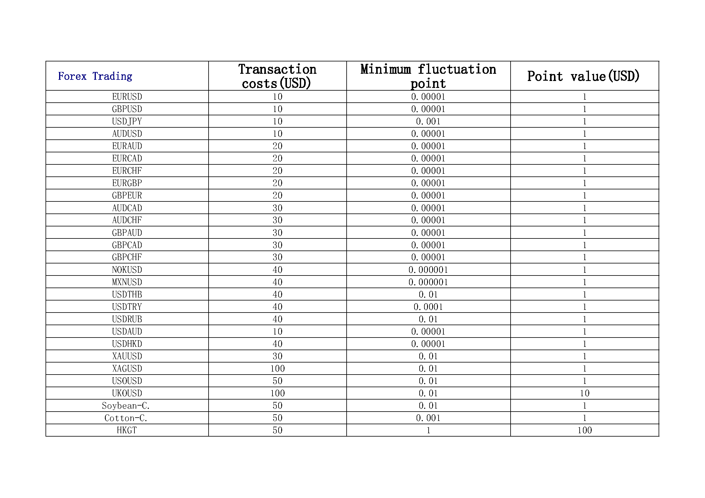 下表列出了我們“新一代”差價合約交易平台上一些最熱門外匯貨幣對的點差、保證金和交易時段。